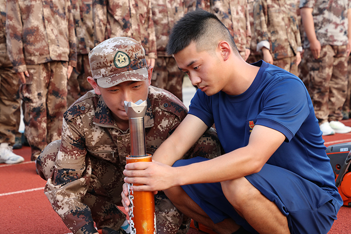 在消防疏散演练中,各学院按照消防应急疏散演练预案将学生有序组织到指定地点,各连军训教官为学生讲解消防应急疏散知识及注意事项,各学院辅导员到各楼层进行疏散路线引导,医护人员进行现场保障,消防维保人员营造演练场景,各方紧密协作,全体新生积极配合,用事先准备好的湿毛巾等逃生用品,捂住口鼻,在急促的消防警报声中,俯身快速有序疏散到室外空旷地带。