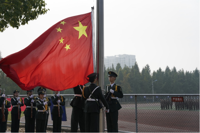 9月30日上午,凤阳校区举行2022级新生军训汇报操演。宝剑锋从磨砺出,梅花香自苦寒来,长达十余天的艰苦训练成就了这一刻的辉煌。随着五星红旗的冉冉升起,军训操演拉开帷幕。