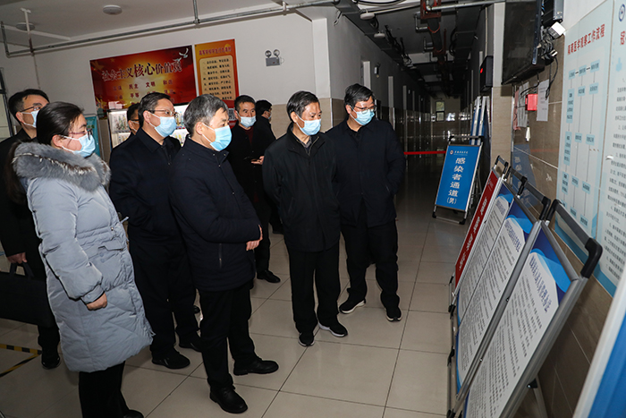 2月18日上午,为全面了解开学准备及疫情防控工作情况,确保学校新学期各项工作有序开展。党委书记蒋德勤,党委副书记、院长李震带领校领导班子成员及有关部门负责同志,分别深入凤阳校区和龙湖校区一线,对新学期开学准备工作进行现场检查指导。