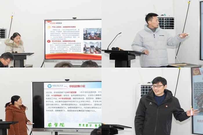 会上,凤阳校区各学院团委负责人围绕学习贯彻党的二十大精神、筑牢青年理想信念、推进创新创业教育、积极拓展第二课堂等内容进行现场述职,龙湖校区各学院团委进行书面述职。现场汇报直奔主题,列数据、盘家底、亮特色,客观总结2022年度共青团工作成绩,查找存在的薄弱环节,并对下一步工作提出了改进措施。校团委书记张聪结合现场述职内容和各学院团委日常工作进行逐一点评。