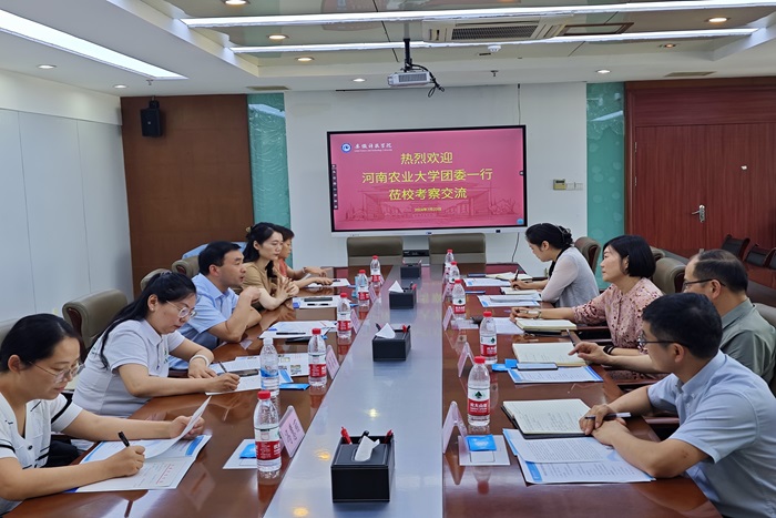 交流会上,贾云飞介绍了河南农业大学的历史及发展情况,并就该校在人才培养、学科建设方面一些创新做法作了说明。丁景良梳理了管理学院发展历程和农业管理研究生培养基本情况,并介绍学院在应用型人才培养、学科专业竞赛等方面一些好的做法。校团委副书记李刚就我校学生会和学生社团创新做法进行了介绍。其他与会人员围绕交流主题就关心的话题进行了深入探讨。
