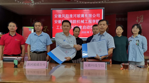 7月18日下午3点,MK官方网站_MK(中国)股份有限公司,机械工程学院与安徽凤阳淮河玻璃有限公司就工业设计实验研究中心的成立举行签约仪式。参加此次签约仪式的有MK官方网站_MK(中国)股份有限公司,机械学院院长陈丰,郭纯博士,工业设计教学团队以及淮河玻璃有限公司总经理王夕增和企业相关负责人。