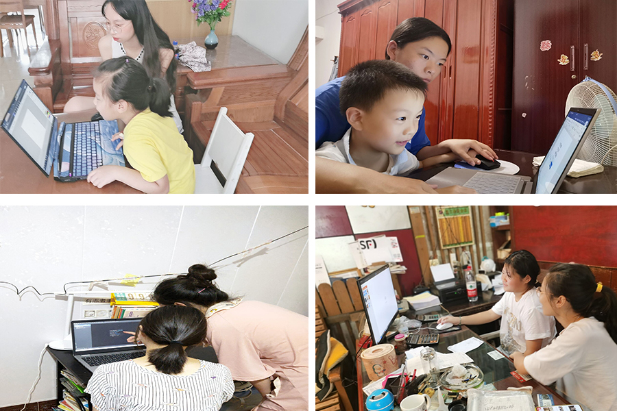 活动中,同学们前往当地居民家中对儿童进行电脑基础知识的培训。同学们利用自己在学校学到的知识,从电脑键盘的布局、电脑快捷键的使用、基础软件的应用等方面,由浅入深地对电脑的基础使用知识进行了详细讲解,使乡村儿童们对电脑的使用不再陌生。同时,同学们还利用线上教育平台带领儿童们学习了一定的人文、科学知识,开拓了儿童们的视野。