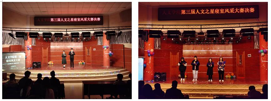 为展示我院学生乐观向上、积极健康的寝室形象,加强学院寝室的文化建设,3月30日晚,人文学院于学术报告厅举办了人文之星寝室风采大赛决赛。人文学院学生会主席杨祉龙、动物科学学院学生会主席许庆威、农学院学生会主席张志、资源与环境学院学生会主席陈汉应邀担任大赛评委。大赛由陆海月等人主持,20级全体学生参加。