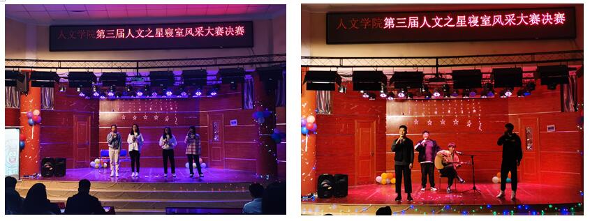 经过层层选拔,晋级决赛的共有十一支队伍。大赛以PPT汇报与才艺展演为载体。参赛寝室通过异彩纷呈的PPT演示,介绍寝室成员的基本情况、寝室文化、寝室设计理念,并融入生活点滴,充分体现了积极向上、温馨融洽的寝室氛围以及互帮互助、团结合作的精神风貌。才艺展示更是精彩绝伦、扣人心弦。西三603带来的诗歌朗诵《未选择的路》,韵律优美,语调慷慨激昂,展现了那些年、那些人在面对人生抉择时的果断与勇气;西三601的歌曲串烧将现场观众带入了愉悦轻松、活泼自然的气氛当中,将人文学子的青春活力展露无遗;西三612朗诵的《祖国,或以梦为马》,铿锵有力、热血沸腾,向现场学生诉说着“中国梦”的伟大。