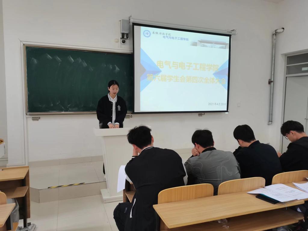 为加强学生管理,强化学生会组织制度宣传,激发学生参与学生会工作的积极性,电气与电子工程学院于4月20日在致知楼A109召开第四次学生会全体大会。学生会指导老师张深、全体学生会成员参加会议,会议由汤润基主持。