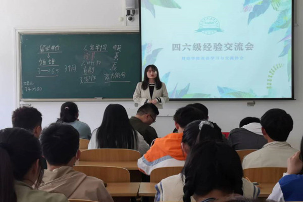为提升同学们的英语学习兴趣,帮助和指导学生积极备战英语四六级考试、研究生英语考试和托福雅思等英语考试,财经学院英语学习与交流协会在致知楼C107教室举办师生英语学习交流沙龙,邀请青年教师水宝山、陈梦雅和财务管理171班龚平、财务管理191班邱方吾等为同学们分享英语学习经验。