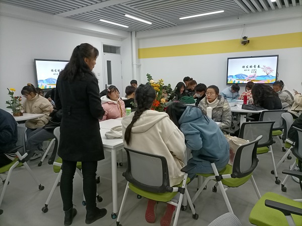 活动共有30余名来自不同年级、不同专业的学生参加,同学们在张雪平老师的指导下,以“以心育种,唱响青春旋律”为主题,巧妙设计花艺作品,同学们剪裁、搭配、扦插,并将激情和奇思妙想给予其中,在作品制作中体验放松心情,释放压力,振奋精神。