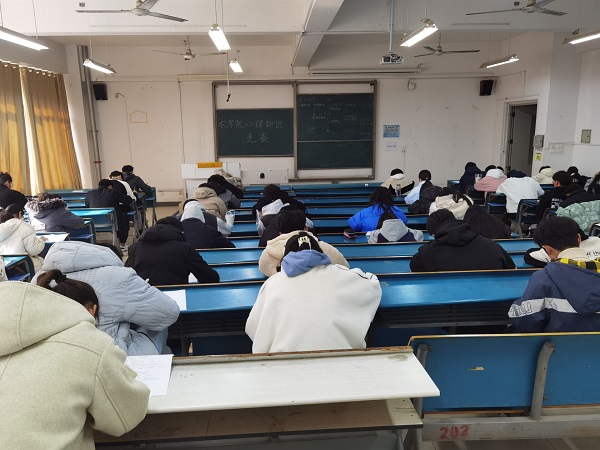 竞赛由选择、填空、简答和案例分析四种题型组成,旨在考查学生的心理知识储备和解决实际问题能力。同学们认真思考,沉着答题,诚信考试,考场秩序井然。