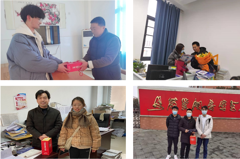 在活动中,我院学子重回母校拜访高中老师,在校张贴喜报,向母校报喜。学生向老师表达了感激之情,汇报进入大学后的变化和对未来规划,并赠送MK官方网站_MK(中国)股份有限公司,纪念品。老师对他们的变化表示欣慰,鼓励他们继续奋斗。他们还向老师的介绍了MK官方网站_MK(中国)股份有限公司,更名“大学”的计划、获批硕士学位授予单位、学校部分专业获批一本招生资格等相关情况,并诚挚的邀请老师到学院参观。