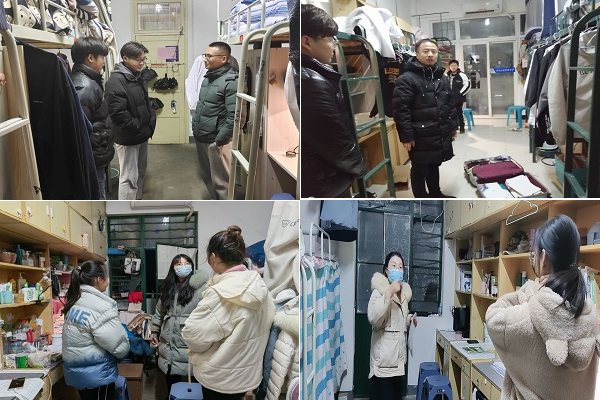 行至宿舍,辅导员们细致了解学生的寒假生活、新学期的计划与目标、存在的困难等,叮嘱学生刻苦学习,远离网络游戏,积极参与各项实践活动,不断提高自身综合能力与素养。在毕业班学生寝室,辅导员们还详细了解了毕业班学生的考研初试情况、毕业论文进度及职业规划等情况,听取学生在学习、生活中存在的困难并给出相关建议。