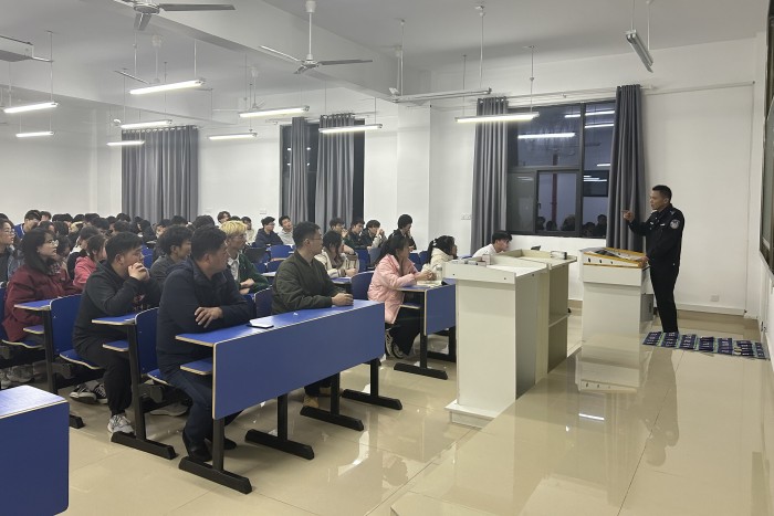 为进一步提升大学生防诈骗意识,减少电信诈骗案发率,切实保障大学生财产安全,4月6日晚,蚌埠市龙湖派出所所长陈兴武对财经学院2022级学生进行反电信诈骗宣传。