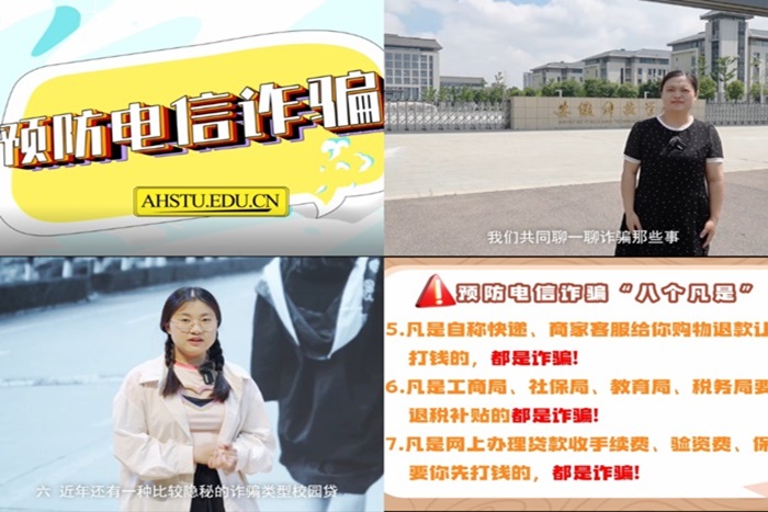 校园特色活动提效果。学生处制作“辅导员开讲”系列微课之预防电信诈骗篇,通过“安科学工”公众号推送,并在易班优课面向全体新生纳入入学教育公共课程,以身边人讲身边事,使教育形式更加鲜活。易班“网络安全教育知识竞赛”内容涵盖网络安全法律法规、网络安全基础知识等方面,增设网络安全相关课程,内容包括网络认知、网络安全、反间防谍等内容,全校共有3000余名学生参与竞赛。易班平台《网络安全承诺书》线上签名、“网上文明用语”接力等活动,倡议同学们自觉抵制网络不良信息,文明健康上网。