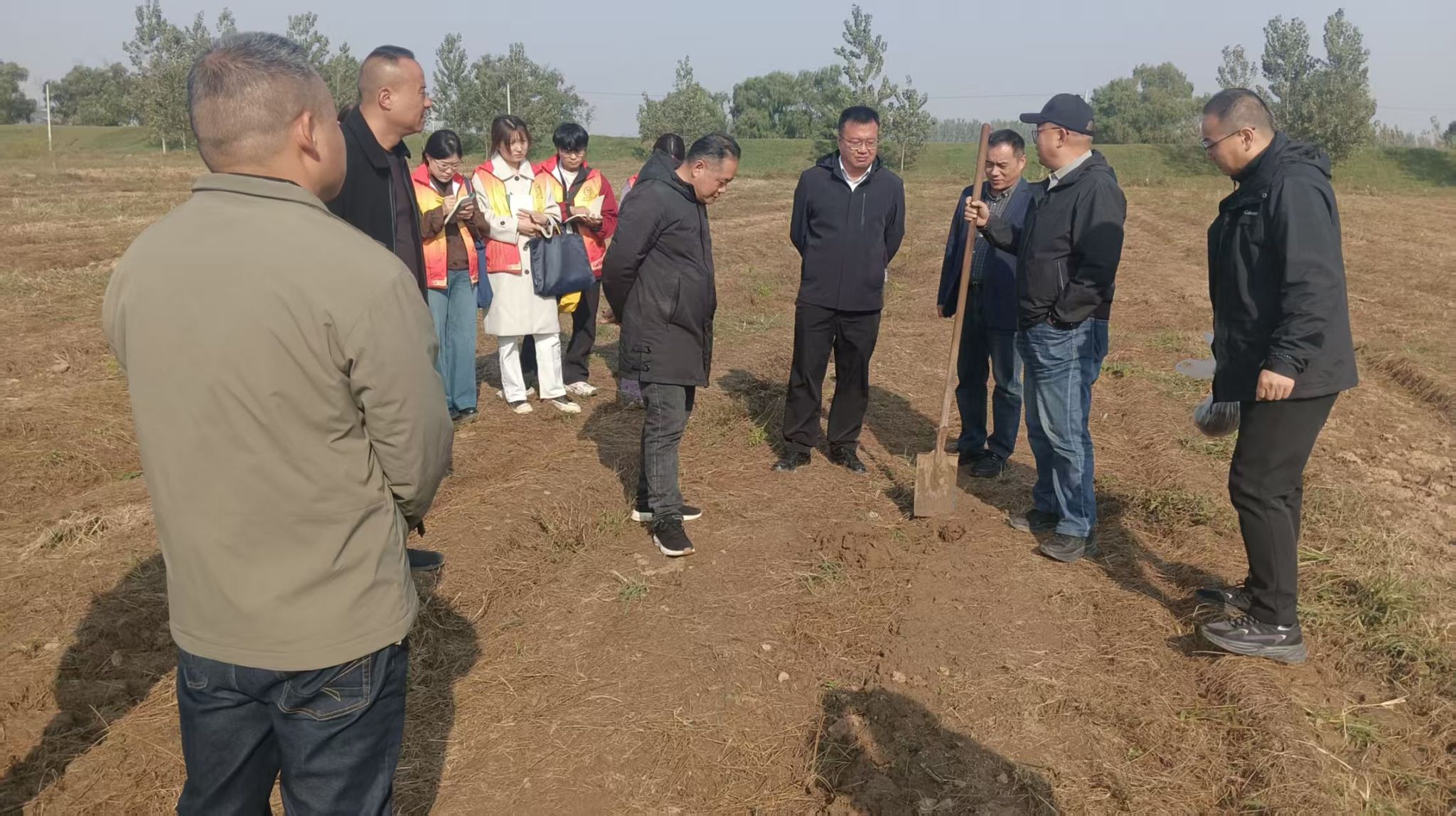 李忠一行人深入田间地头实地考察当地农作物的种植情况,详细询问当地作物种类、种植方式、土地灌溉及施肥等制约作物高产的农业发展的关键问题。针对高标准农田肥力提升、作物单产能力提升等问题,李孝良现场给出增加有机肥施肥量、进行土地深耕等多种解决方案。为更加准确掌握土地肥力状况,专家团队在几种不同田地进行现场土壤采样,通过实验室化验确定肥力缺失情况,为土壤改良提供精确数据,为黄咀村种植大户提供专业技术帮扶。