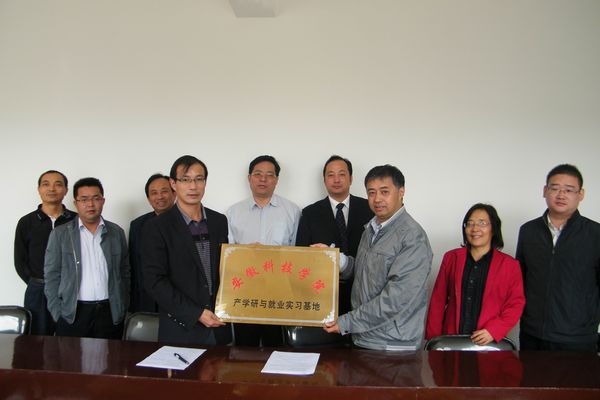 10月19日上午,副校长刘正,食品药品学院党总支书记潘勇、院长李先保、副院长俞浩、分析检测中心主任时维静等六人出席我校产学研与就业实习基地签约揭牌仪式。凤阳县科技局局长胡正学、安徽凤阳科苑药业有限公司总经理唐英武、质量总监邵明辉等出席仪式。会议由俞浩主持。