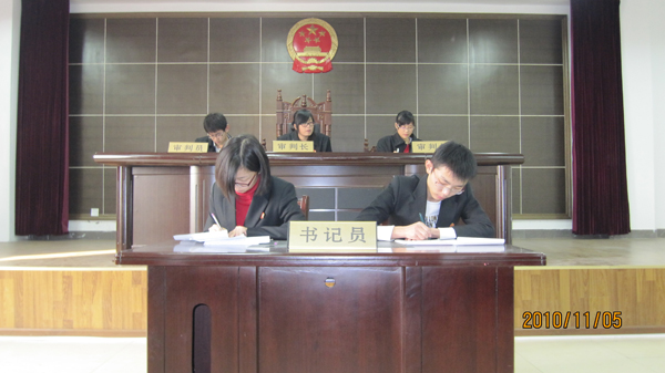 11月5日上午,法学专业07级学生在庄严肃穆的模拟法庭进行了一次民事案件的模拟审判。文法学院院领导、法学系老师给予高度重视,亲临庭审现场进行观摩并给予指导。