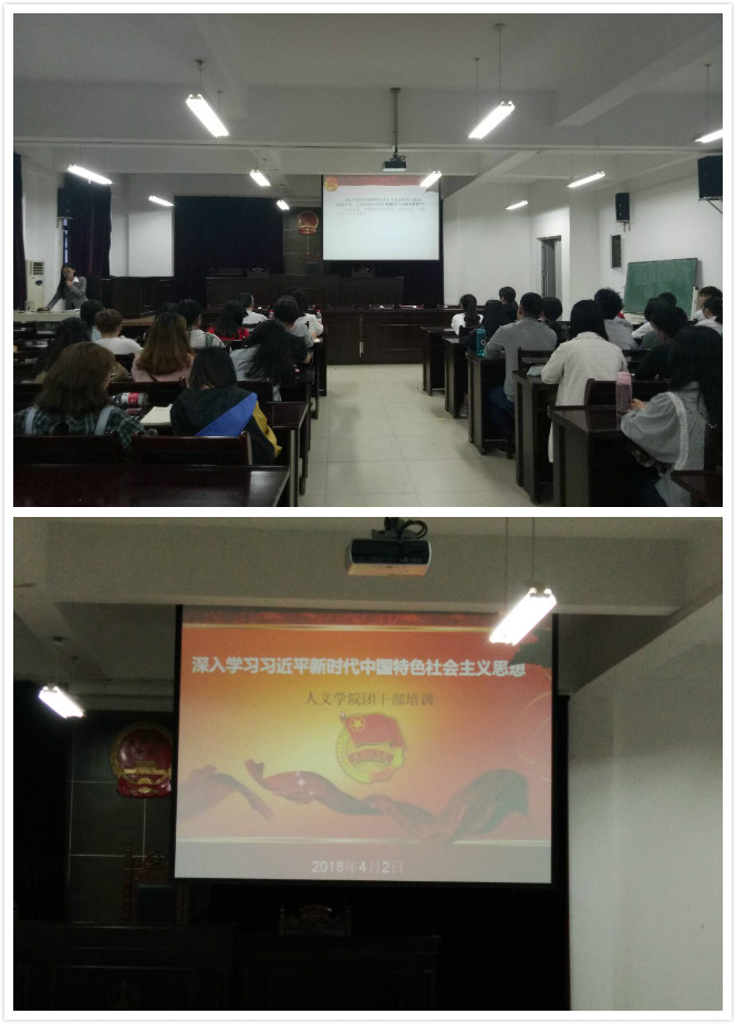 为深入学习宣传贯彻党的十九大精神,以习近平新时代中国特色社会主义思想武装共青团干部、指导团学实践,4月3日晚,人文学院在模拟法庭举办首期团干部专题培训,组织推动团学骨干带头学习习近平新时代中国特色社会主义思想。此次培训由辅导员曹珊珊主讲,学院全体团干部参加了培训。