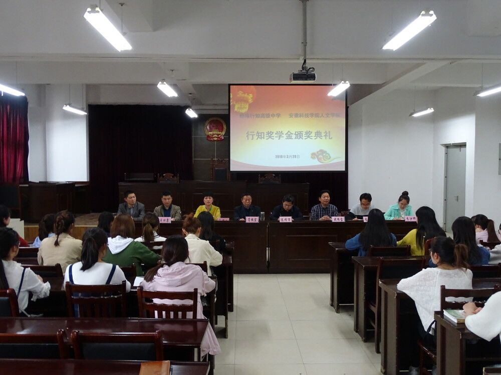 3月29日下午,人文学院与蚌埠行知高级中学在模拟法庭隆重举行“行知奖学金”颁奖典礼。人文学院院长陈传万、党总支书记杜士凤、副院长李晓东、汉语言文学教研室主任姚大怀博士、党总支秘书李沙娜,蚌埠行知高级中学董事长肖振宏、校长欧振宝、副校长王仕康出席典礼。2016级汉语言文学专业37名“行知班”学生参加典礼。典礼由杜士凤主持。