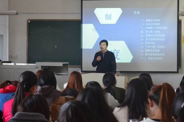 围绕出版单位的设立,鲍家全结合自身二十多年从业经验,从出版单位的原始属性、改革改制,到如今出版社的设立程序,以及目前出版社的现状做了具体的讲解。鲍家全为学生详细地分析了出版的范围,并指出图书出版应以服务地方经济政治文化为原则。鲍家全还与学生分享了诸多出版社出版行为等方面的知识。