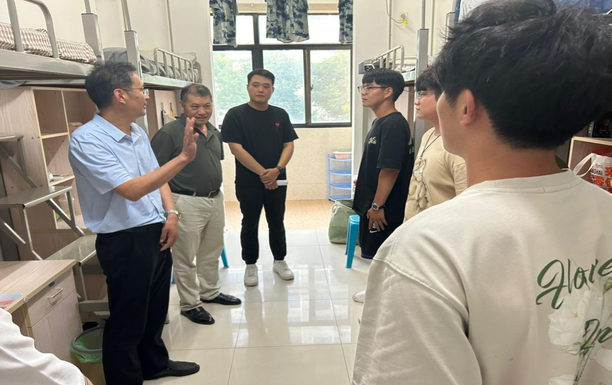 走访过程中,学院党政领导与2024级新生亲切交谈,了解学生个人基本情况和在校适应情况。党委书记黄树桥希望同学们注意宿舍环境卫生的打扫与保持,共同营造干净舒适的生活氛围。同时他提醒同学们要注意财产、反诈等安全问题,加强自身防范意识,做好安全防护,避免电信诈骗等问题的发生。院长李子荣希望学生积极转变身份,努力适应大学生活和学习,尽早确立个人发展目标,做好职业生涯规划,通过学好专业知识和参加各类实践活动提高个人的综合素养和动手能力,提升自己未来的社会竞争力。