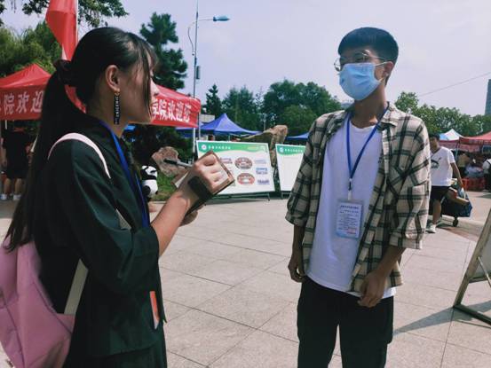 “能够做志愿者服务是一次很棒的体验,使我认识了很多同级的同学,我觉得很有意义。”来自中药学20级的新生李颖如此说到。作为20级迎新志愿者一员,他的新鲜活力感染着每一位远道而来的小萌新,灿烂的笑容消除了一切疲劳。他就是志愿者服务站点的一缕清风,吹走了炙热的阳光,吹来了和谐与美好。