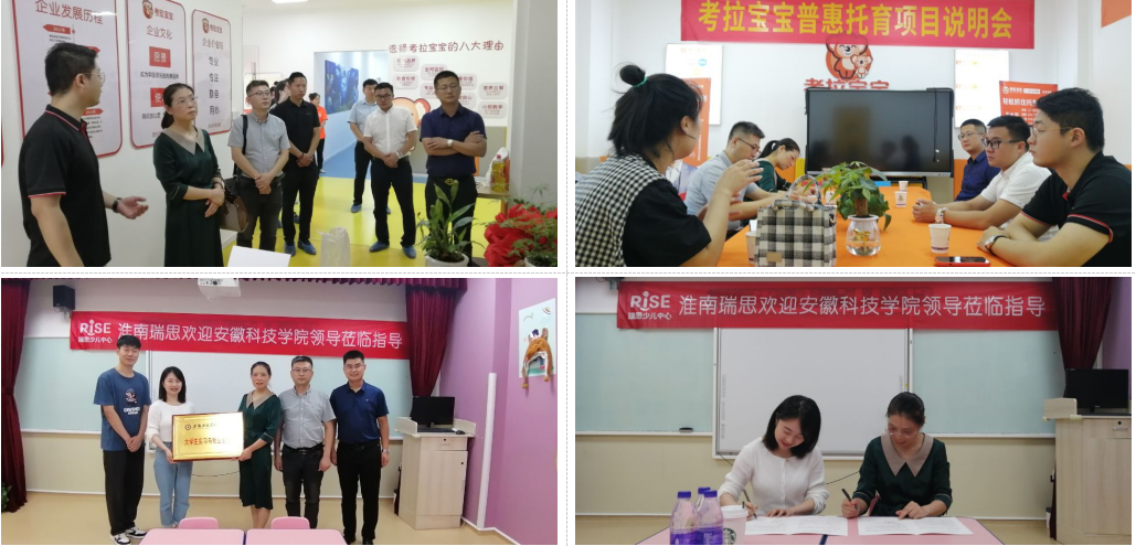 在淮南市,蔡为青一行走访了徽州学堂和瑞思英语两家教育培训机构,听取了企业负责人对企业的介绍,对“双减”政策对教育培训机构的影响有了更深入的认识。了解到两家机构在教育部门的监管下及时转型,由课程教育转向幼儿托育和兴趣教育,公司得到发展大家感到十分高兴。双方就毕业生实习和就业工作进行了交流,并签订了校企合作协议书。